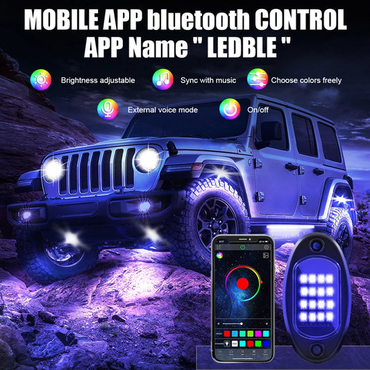 4/6/8 In 1 RGB LED Rock Lights Bluetooth-Compatible APP Control Music Sync Car Chassis Light Undergolw Waterproof Neon Lights